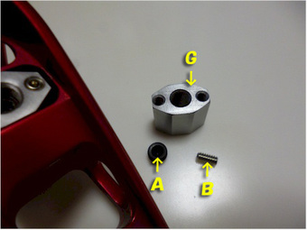 | A ボルトロックネジ | B ブロックロックネジ | C サイドロックネジ | D サイドロックワッシャ | E リムボルト | F リムボルトベゼル | G ボルトボックス | |